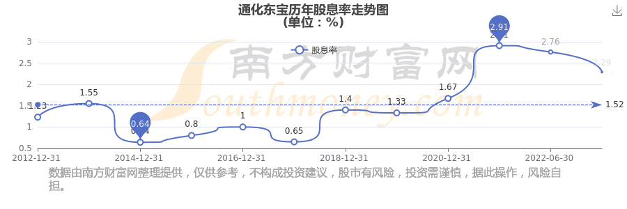 近年通化東寶年度股息率走勢(shì)如下圖: