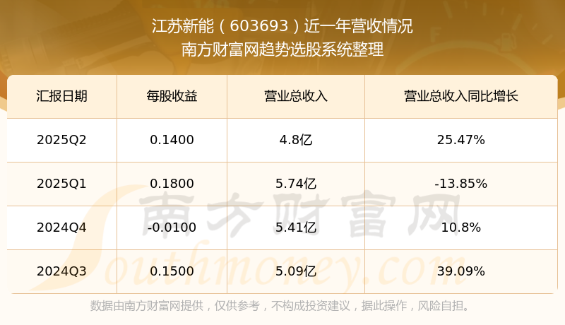 江蘇新能2025年第二季度財(cái)報(bào)顯示,公司主營收入4.8億元,同比25.47%;歸母凈利潤1.18億元,同比181.56%;扣非凈利潤1.06億元,同比200.04%。