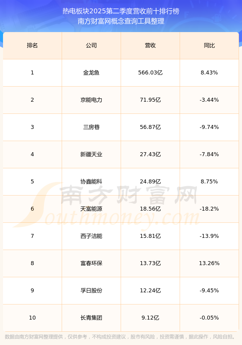 按照南方財(cái)富網(wǎng)概念查詢工具統(tǒng)計(jì),該股所屬板塊為熱電板塊,該板塊共有21只股票,寧波聯(lián)合2025第二季度營收在該板塊中排名為第21名,該板塊2025第二季度營收排名前十的股票如下表: