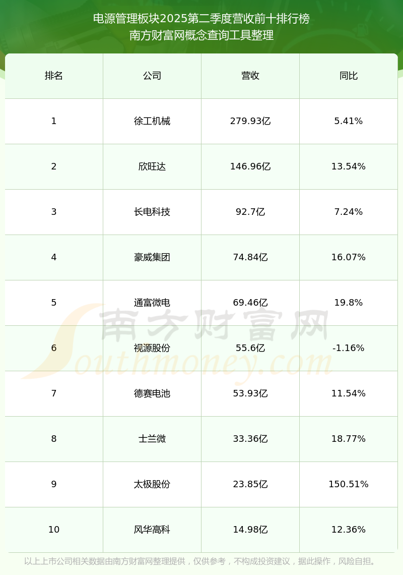 按照南方財(cái)富網(wǎng)概念查詢工具統(tǒng)計(jì),該股所屬板塊為電源管理板塊,該板塊共有30只股票,帝奧微2025第二季度營(yíng)收在該板塊中排名為第30名,該板塊2025第二季度營(yíng)收排名前十的股票如下表: