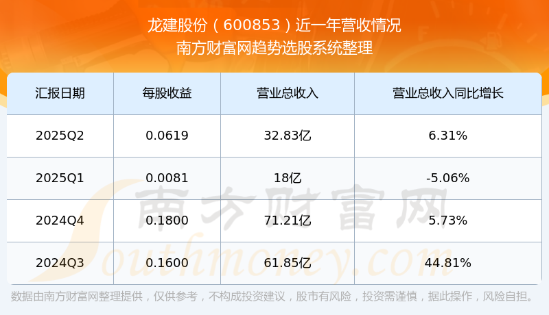 2025年第二季度,龍建股份營(yíng)收同比6.31%,凈利潤(rùn)同比-1.44%。