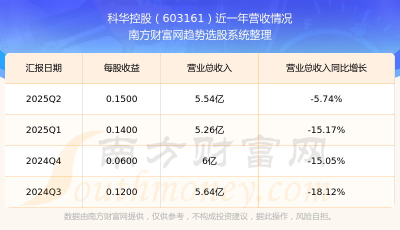科華控股發(fā)布2025年第二季度財(cái)報(bào)。實(shí)現(xiàn)總營收5.54億元,同比增長-5.74%;扣非凈利潤同比增長-28.69%至1618萬元。