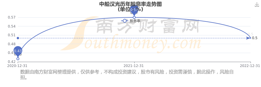 近年中船漢光年度股息率走勢(shì)如下圖: