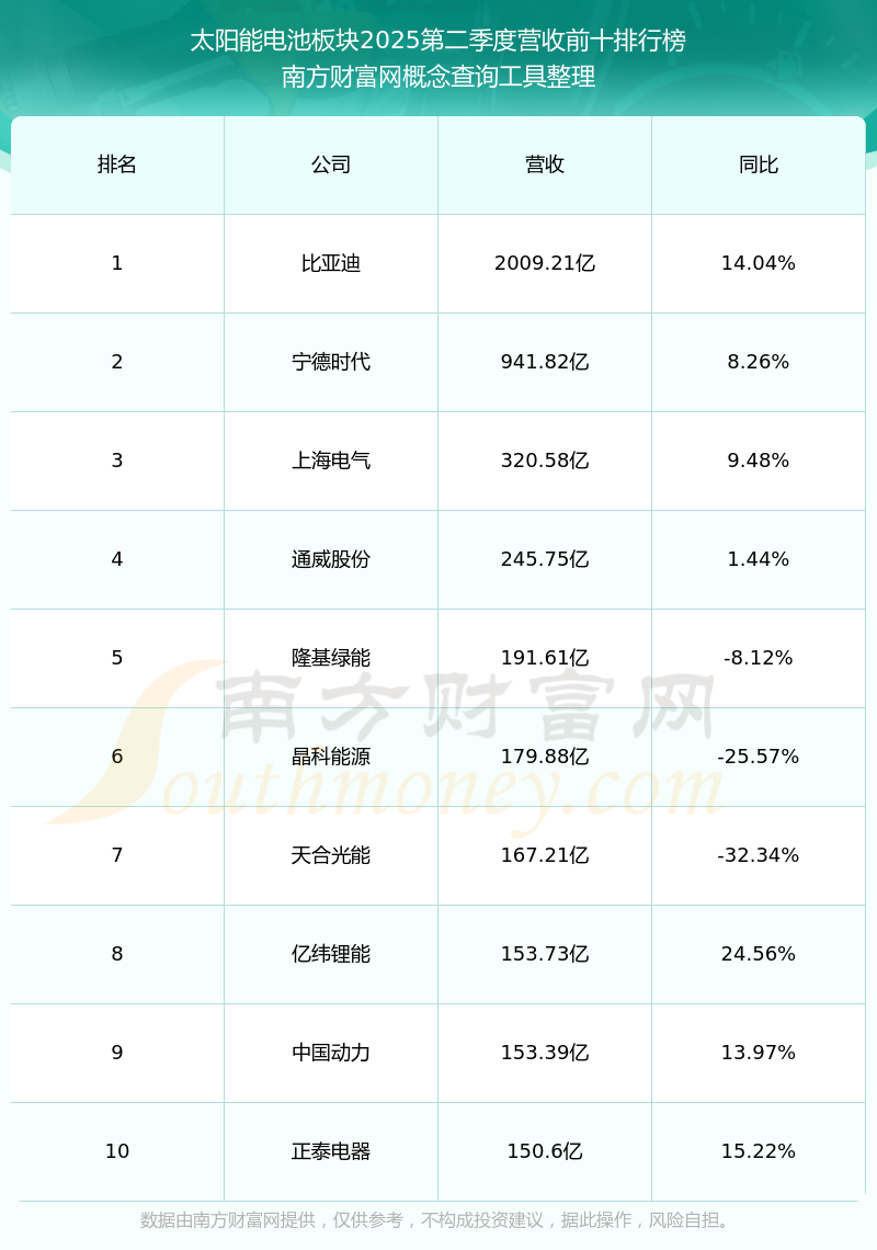 按照南方財富網(wǎng)概念查詢工具統(tǒng)計,該股所屬板塊為太陽能電池板塊,該板塊共有95只股票,愛旭股份2025第二季度營收在該板塊中排名為第27名,該板塊2025第二季度營收排名前十的股票如下表: