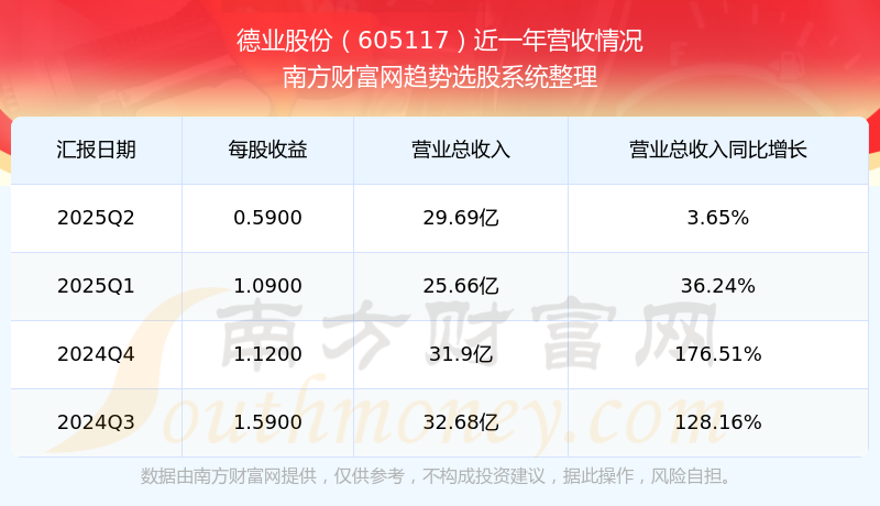 德業(yè)股份(605117)披露2025年第二季度報告,報告期實現(xiàn)營收29.69億元,同比3.65%;歸母凈利潤8.17億元,同比1.72%;扣非凈利潤8.49億元,同比15.09%;基本每股收益0.59元。