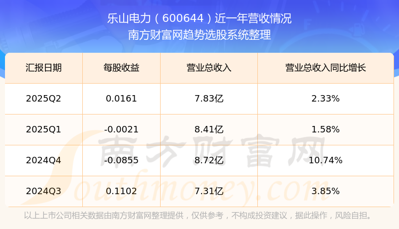 2025年第二季度,樂山電力營收同比2.33%,凈利潤同比-36.88%。