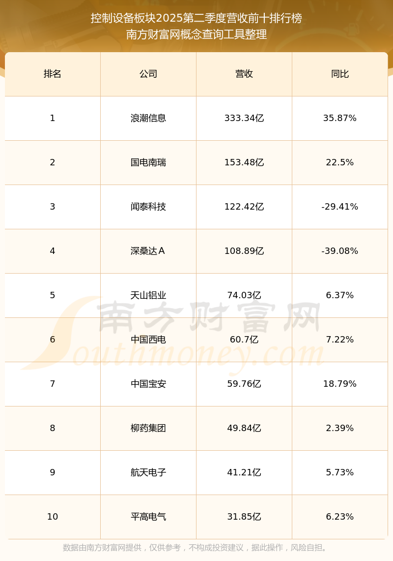 按照南方財富網(wǎng)概念查詢工具統(tǒng)計,該股所屬板塊為控制設(shè)備板塊,該板塊共有66只股票,興圖新科2025第二季度營收在該板塊中排名為第66名,該板塊2025第二季度營收排名前十的股票如下表: