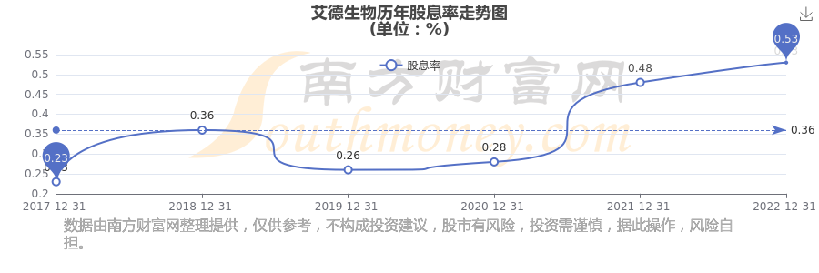 近年艾德生物年度股息率走勢(shì)如下圖: