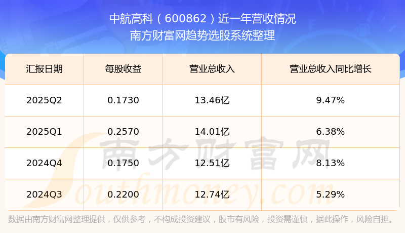 按照南方財富網(wǎng)概念查詢工具統(tǒng)計,該股所屬板塊為新材料板塊,該板塊共有560只股票,中航高科2025第二季度營收在該板塊中排名為第182名,該板塊2025第二季度營收排名前十的股票如下表: