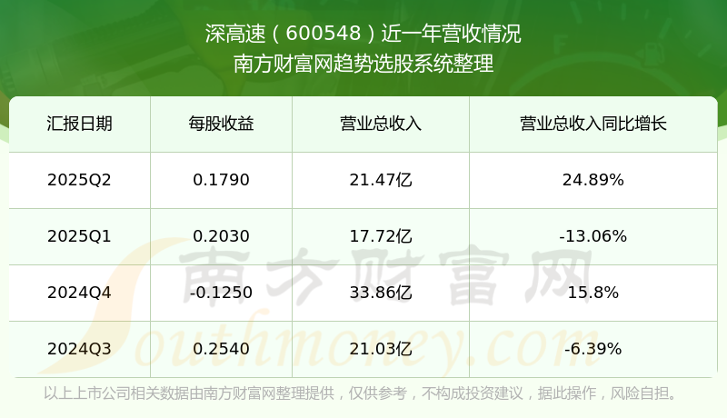 2025年第二季度,深高速營(yíng)收同比24.89%,凈利潤(rùn)同比59.09%。