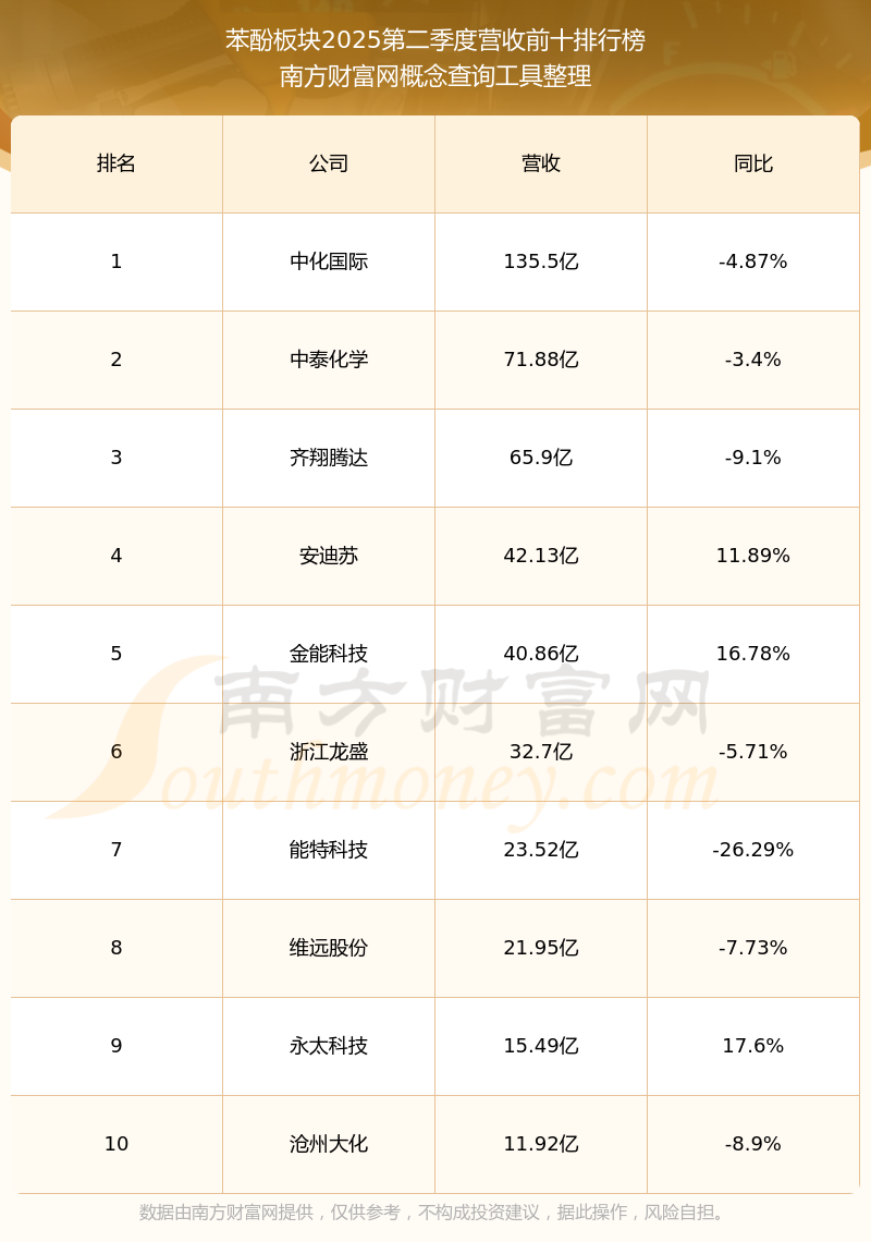 按照南方財(cái)富網(wǎng)概念查詢工具統(tǒng)計(jì),該股所屬板塊為苯酚板塊,該板塊共有16只股票,維遠(yuǎn)股份2025第二季度營(yíng)收在該板塊中排名為第8名,該板塊2025第二季度營(yíng)收排名前十的股票如下表: