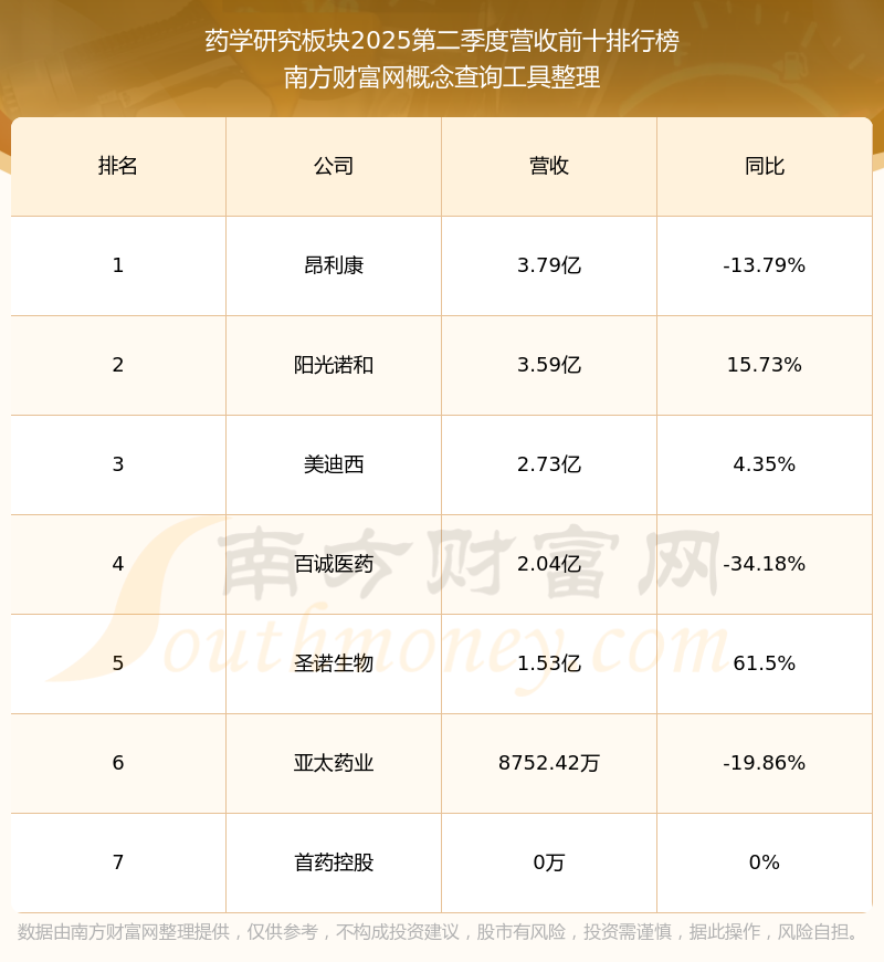 按照南方財(cái)富網(wǎng)概念查詢工具統(tǒng)計(jì),該股所屬板塊為藥學(xué)研究板塊,該板塊共有7只股票,美迪西2025第二季度營(yíng)收在該板塊中排名為第3名,該板塊2025第二季度營(yíng)收排名前十的股票如下表: