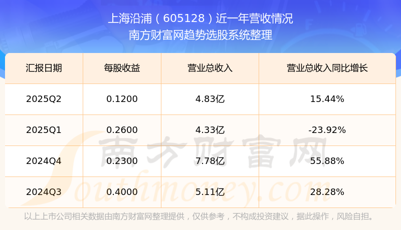上海沿浦2025年第二季度財報顯示,公司主營收入4.83億元,同比15.44%;歸母凈利潤4515.58萬元,同比51.22%;扣非凈利潤4372.19萬元,同比50.49%。