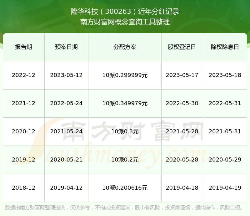 隆華科技最新一次公布的分紅方案:10派0.299999元。