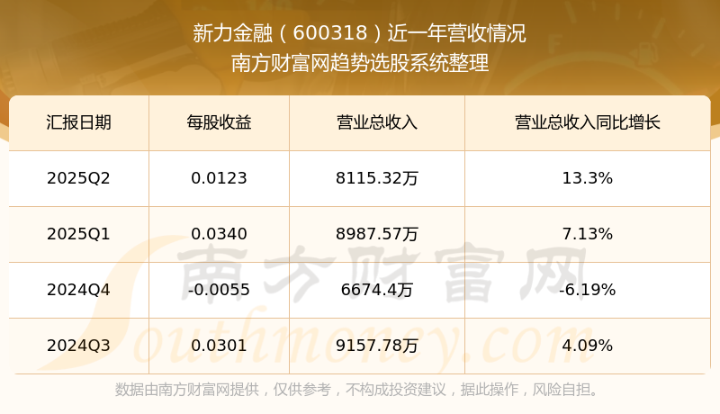 按照南方財富網(wǎng)概念查詢工具統(tǒng)計,該股所屬板塊為多元金融板塊,該板塊共有35只股票,新力金融2025第二季度營收在該板塊中排名為第29名,該板塊2025第二季度營收排名前十的股票如下表: