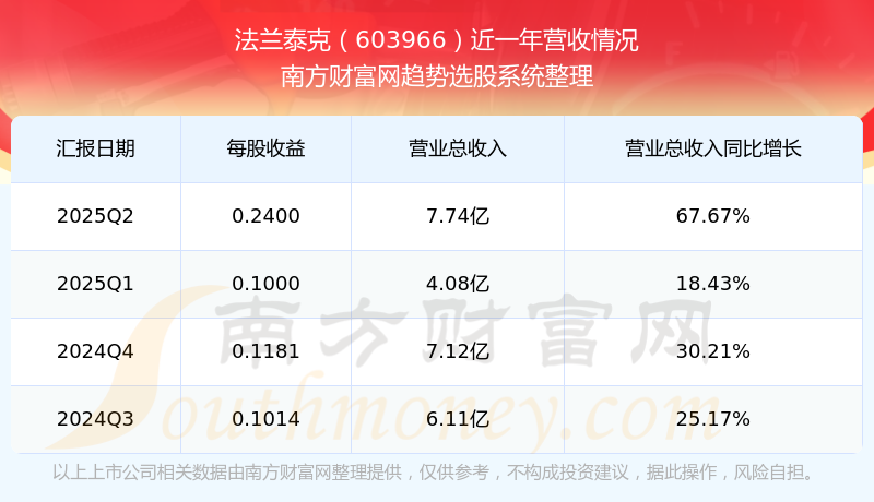 法蘭泰克2025年第二季度公司實(shí)現(xiàn)營業(yè)收入7.74億元,同比67.67%;歸母凈利潤8771.8萬元,同比42.13%。