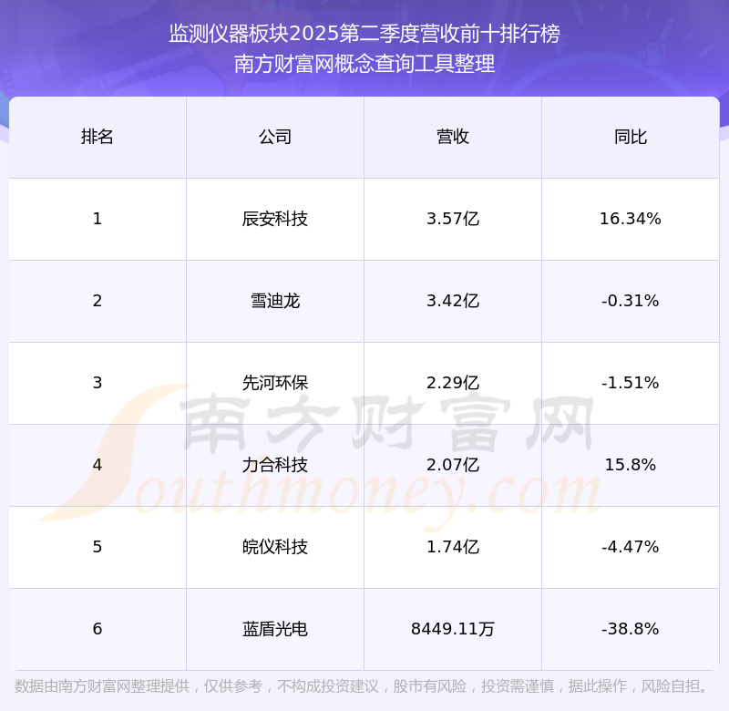 按照南方財(cái)富網(wǎng)概念查詢工具統(tǒng)計(jì),該股所屬板塊為監(jiān)測儀器板塊,該板塊共有6只股票,碧興物聯(lián)2025第二季度營收在該板塊中排名為第6名,該板塊2025第二季度營收排名前十的股票如下表: