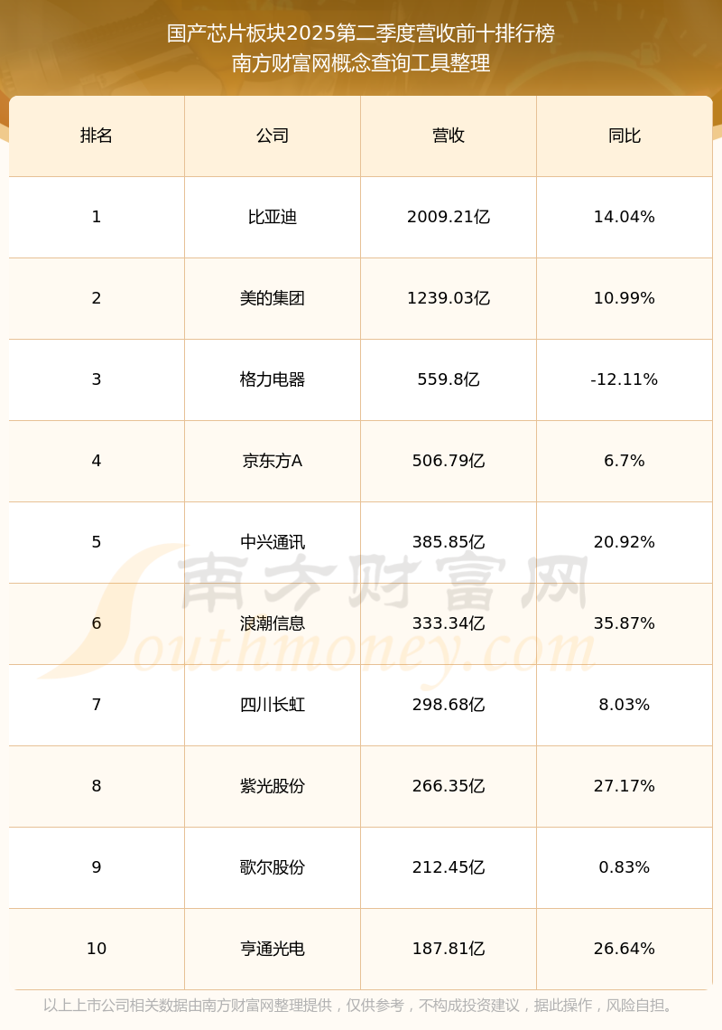 按照南方財(cái)富網(wǎng)概念查詢工具統(tǒng)計(jì),該股所屬板塊為國(guó)產(chǎn)芯片板塊,該板塊共有391只股票,晶方科技2025第二季度營(yíng)收在該板塊中排名為第229名,該板塊2025第二季度營(yíng)收排名前十的股票如下表: