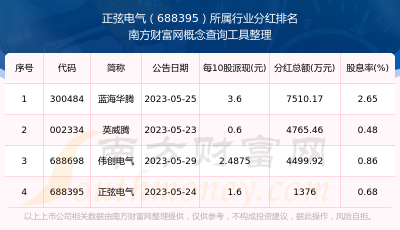 二、正弦電氣688395行業(yè)分紅排名