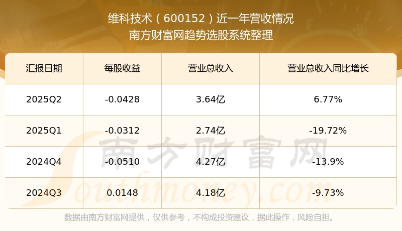 維科技術(shù)(600152)披露2025年第二季度報(bào)告,報(bào)告期實(shí)現(xiàn)營(yíng)收3.64億元,同比6.77%;歸母凈利潤(rùn)-2264.18萬(wàn)元,同比-71.78%;扣非凈利潤(rùn)-2595.96萬(wàn)元,同比-12.16%。