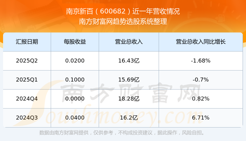 南京新百2025年第二季度顯示,公司主營收入16.43億元,同比-1.68%;歸母凈利潤3794.54萬元,同比7.09%;扣非凈利潤1905.32萬元,同比-66.67%。