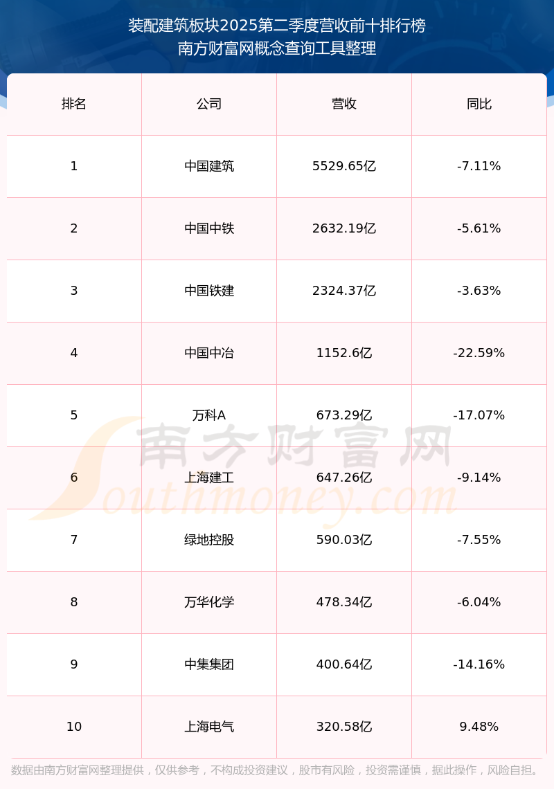 按照南方財(cái)富網(wǎng)概念查詢工具統(tǒng)計(jì),該股所屬板塊為裝配建筑板塊,該板塊共有92只股票,安徽建工2025第二季度營(yíng)收在該板塊中排名為第14名,該板塊2025第二季度營(yíng)收排名前十的股票如下表: