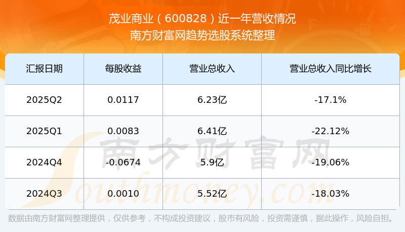 茂業(yè)商業(yè)(600828)披露2025年第二季度報告,報告期實現(xiàn)營收6.23億元,同比-17.1%;歸母凈利潤2024.78萬元,同比-78.38%;扣非凈利潤2295.99萬元,同比-69.85%。