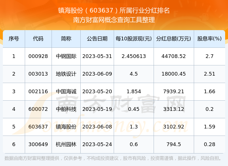二、鎮(zhèn)海股份603637行業(yè)分紅排名