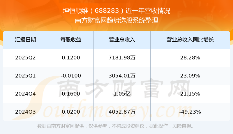 財(cái)報(bào)顯示,2025年第二季度坤恒順維營(yíng)收7181.98萬(wàn)元,同比增長(zhǎng)28.28%,凈利潤(rùn)1353.59萬(wàn)元,同比增長(zhǎng)23.44%。