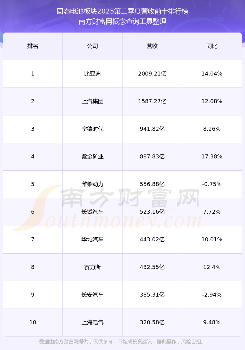 按照南方財(cái)富網(wǎng)概念查詢工具統(tǒng)計(jì),該股所屬板塊為固態(tài)電池板塊,該板塊共有322只股票,眾源新材2025第二季度營(yíng)收在該板塊中排名為第75名,該板塊2025第二季度營(yíng)收排名前十的股票如下表:
