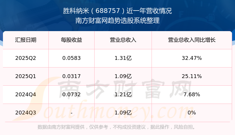 財(cái)報(bào)顯示,2025年第二季度勝科納米營(yíng)收1.31億元,同比增長(zhǎng)32.47%,凈利潤(rùn)2184.96萬(wàn)元,同比增長(zhǎng)2.36%。