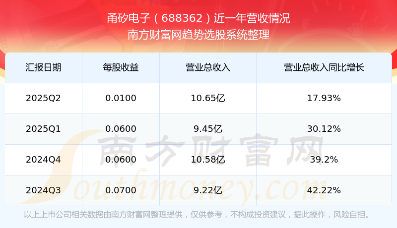 按照南方財(cái)富網(wǎng)概念查詢工具統(tǒng)計(jì),該股所屬板塊為封裝板塊,該板塊共有53只股票,甬矽電子2025第二季度營收在該板塊中排名為第53名,該板塊2025第二季度營收排名前十的股票如下表: