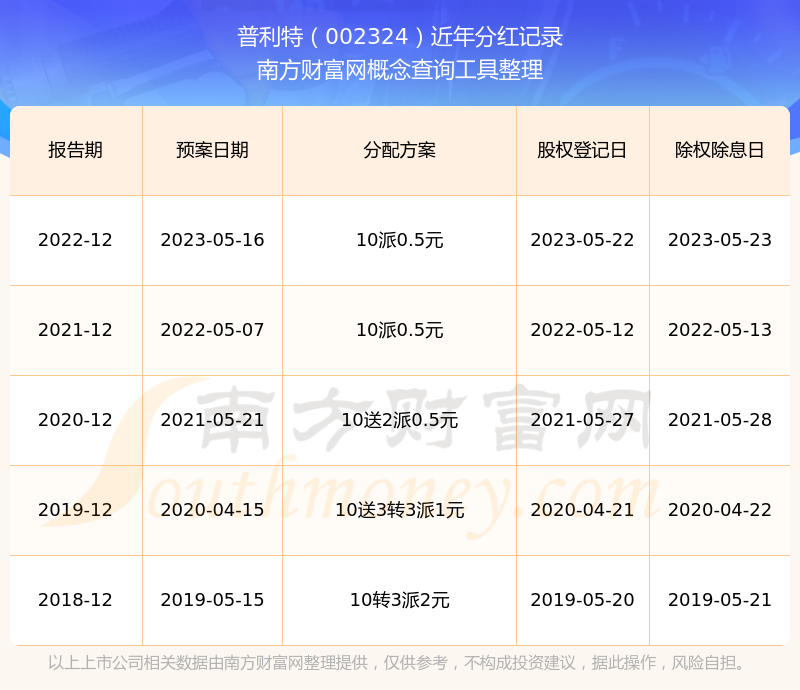近年普利特分紅情況如下表所示: