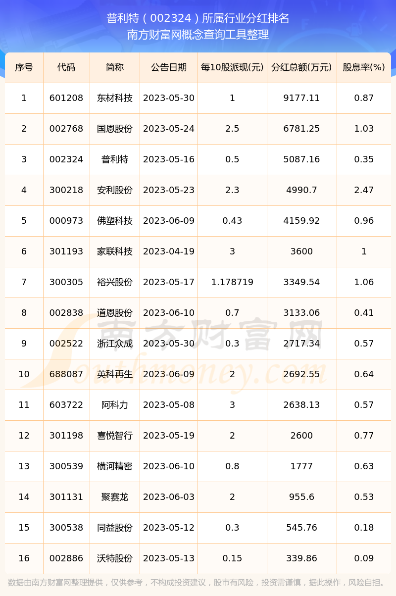 二、普利特002324行業(yè)分紅排名