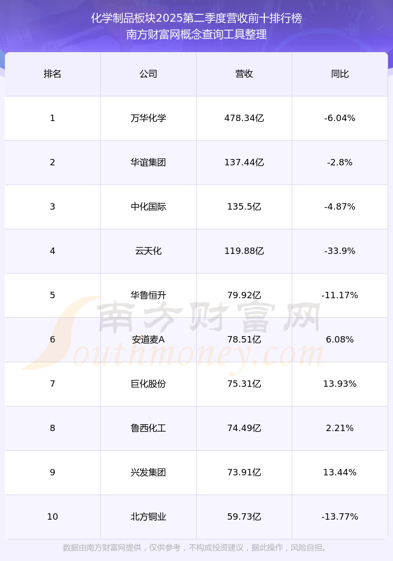 按照南方財富網概念查詢工具統(tǒng)計,該股所屬板塊為化學制品板塊,該板塊共有226只股票,滄州大化2025第二季度營收在該板塊中排名為第51名,該板塊2025第二季度營收排名前十的股票如下表: