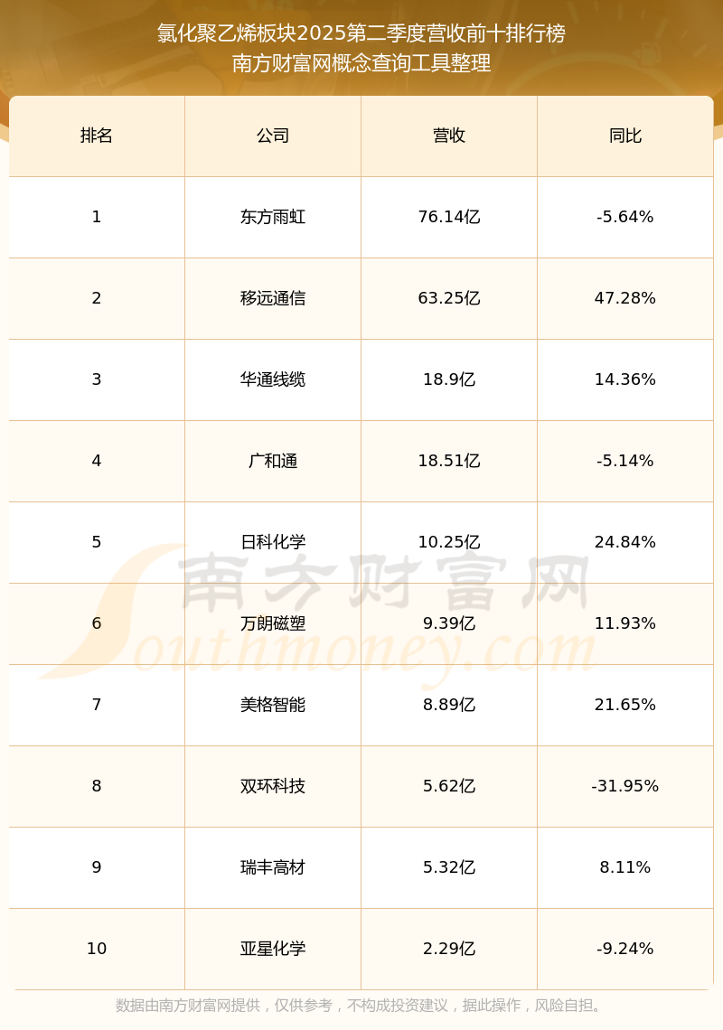 按照南方財富網(wǎng)概念查詢工具統(tǒng)計,該股所屬板塊為氯化聚乙烯板塊,該板塊共有11只股票,亞星化學2025第二季度營收在該板塊中排名為第10名,該板塊2025第二季度營收排名前十的股票如下表: