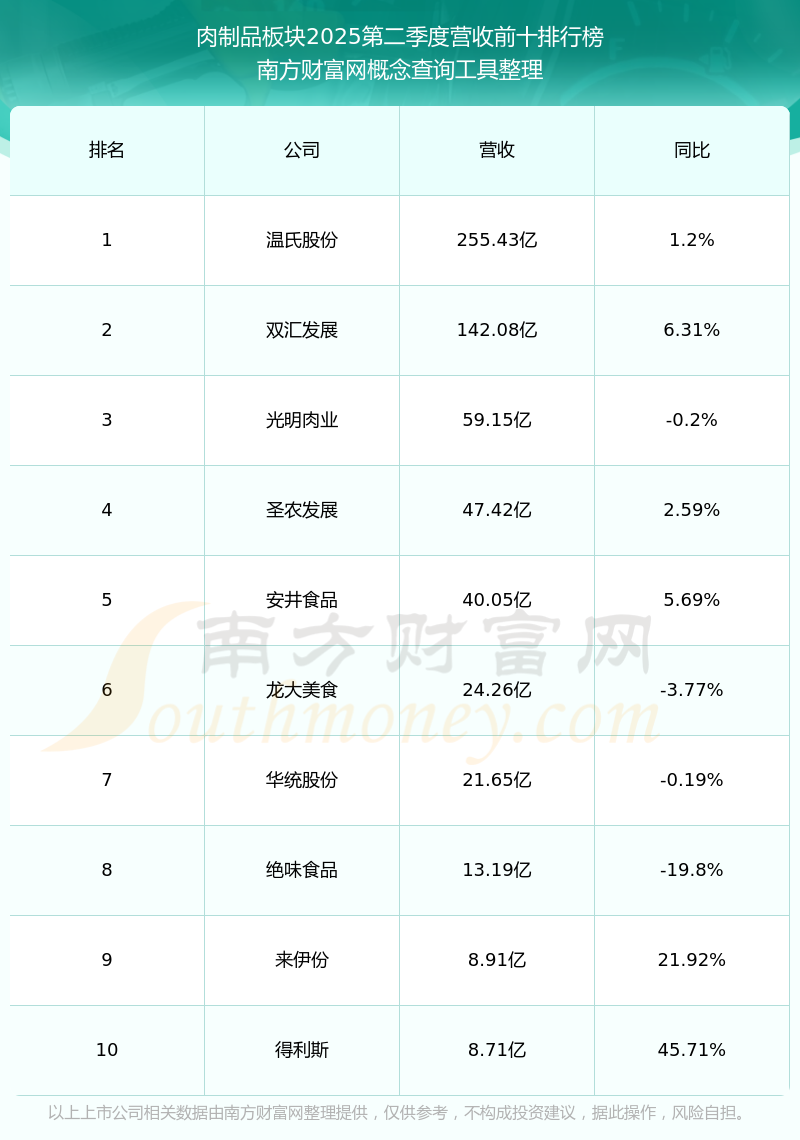 按照南方財富網概念查詢工具統(tǒng)計,該股所屬板塊為肉制品板塊,該板塊共有18只股票,春雪食品2025第二季度營收在該板塊中排名為第18名,該板塊2025第二季度營收排名前十的股票如下表: