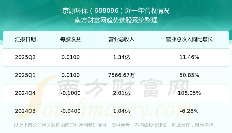 在2025年第二季度,京源環(huán)保的業(yè)績表現(xiàn),主營業(yè)務收入達到1.34億元,實現(xiàn)了11.46%的同比增長率。同時,公司歸母凈利潤錄得37.1萬元,同比增長-82.68%。