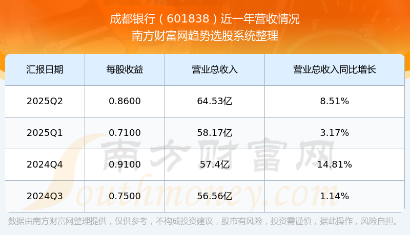 成都銀行股票近一年營收情況如下表: