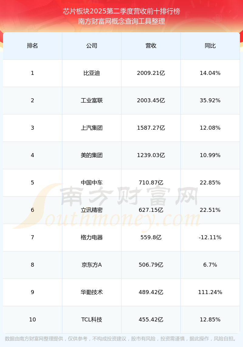 按照南方財(cái)富網(wǎng)概念查詢(xún)工具統(tǒng)計(jì),該股所屬板塊為芯片板塊,該板塊共有913只股票,納芯微2025第二季度營(yíng)收在該板塊中排名為第319名,該板塊2025第二季度營(yíng)收排名前十的股票如下表: