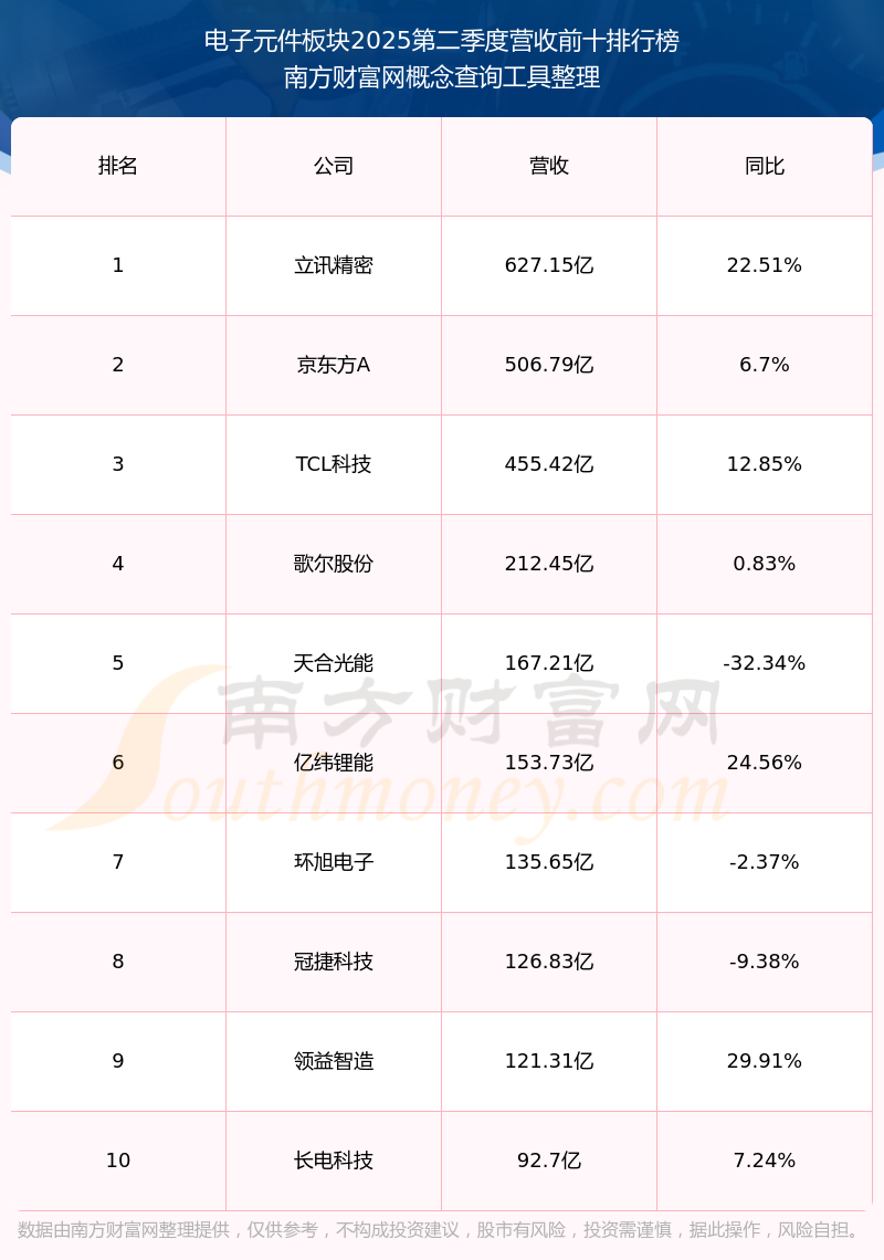 按照南方財富網(wǎng)概念查詢工具統(tǒng)計,該股所屬板塊為電子元件板塊,該板塊共有354只股票,天微電子2025第二季度營收在該板塊中排名為第352名,該板塊2025第二季度營收排名前十的股票如下表: