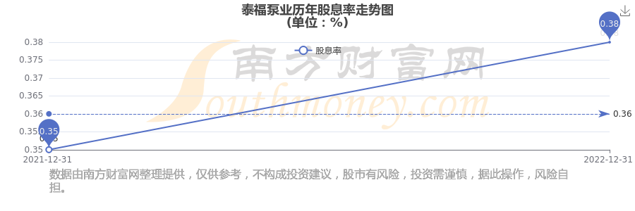 近年泰福泵業(yè)年度股息率走勢如下圖: