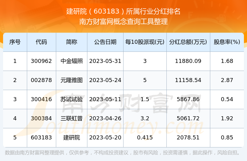 二、建研院603183行業(yè)分紅排名
