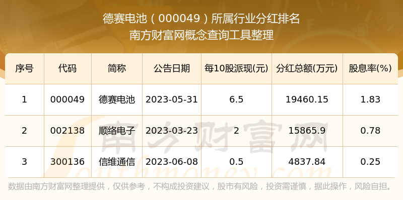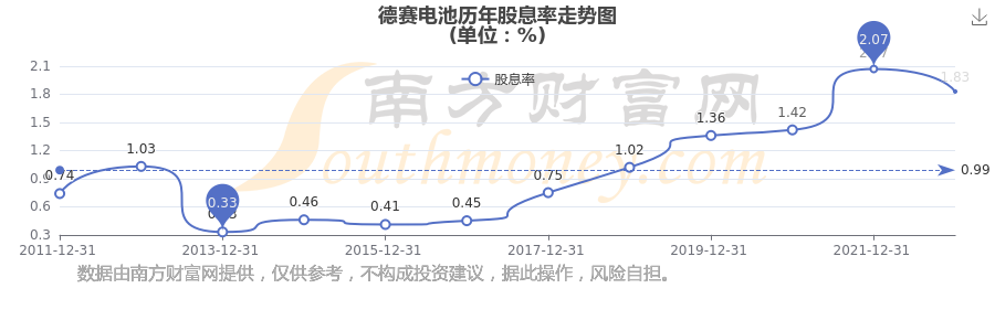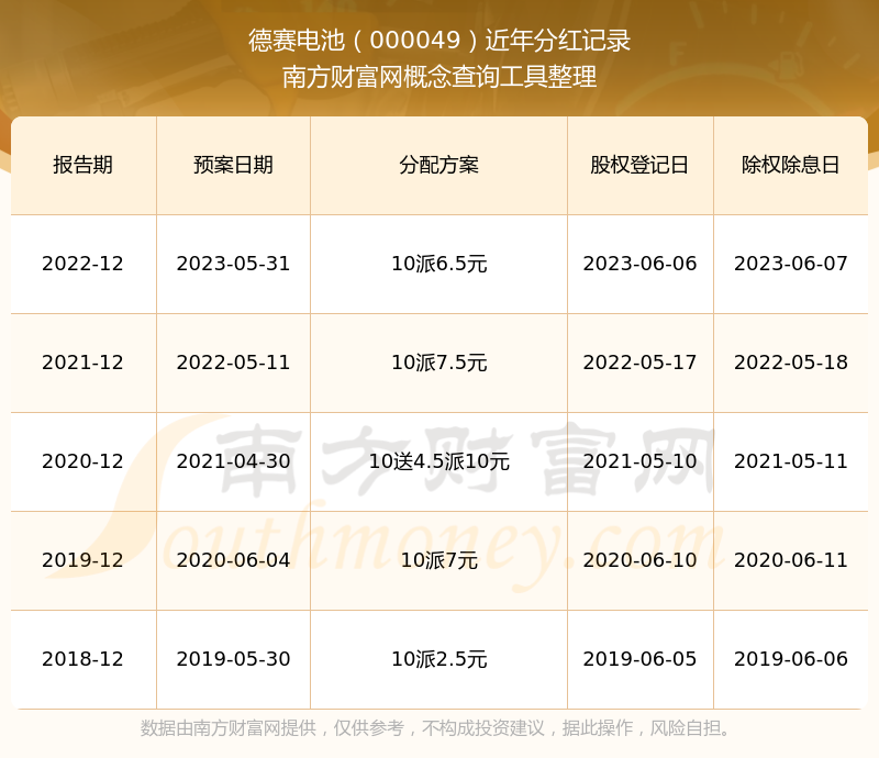 德賽電池最新一次公布的分紅方案:10派6.5元。