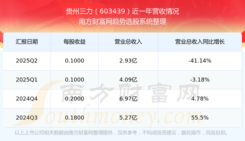 貴州三力2025年第二季度財報顯示,公司主營收入2.93億元,同比-41.14%;歸母凈利潤4111.42萬元,同比-32.61%;扣非凈利潤3239.99萬元,同比-42.48%。