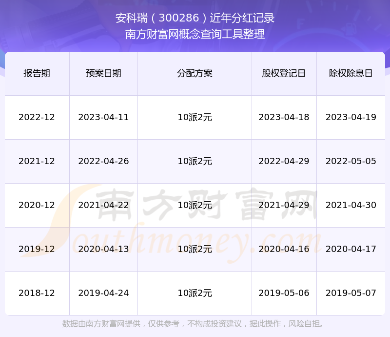 安科瑞最新一次公布的分紅方案為10派2元。本次權(quán)益分派股權(quán)登記日為2023年4月18日,除權(quán)除息日為2023年4月19日,派息日為2023年4月19日。