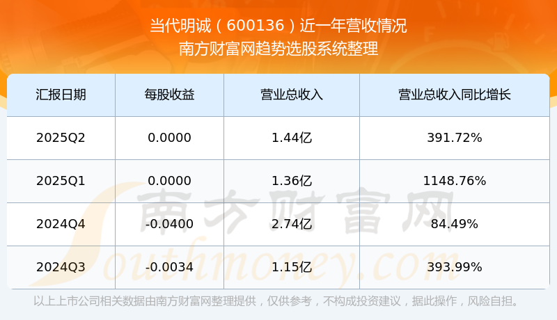 一、當(dāng)代明誠(chéng)(600136)股票營(yíng)收情況