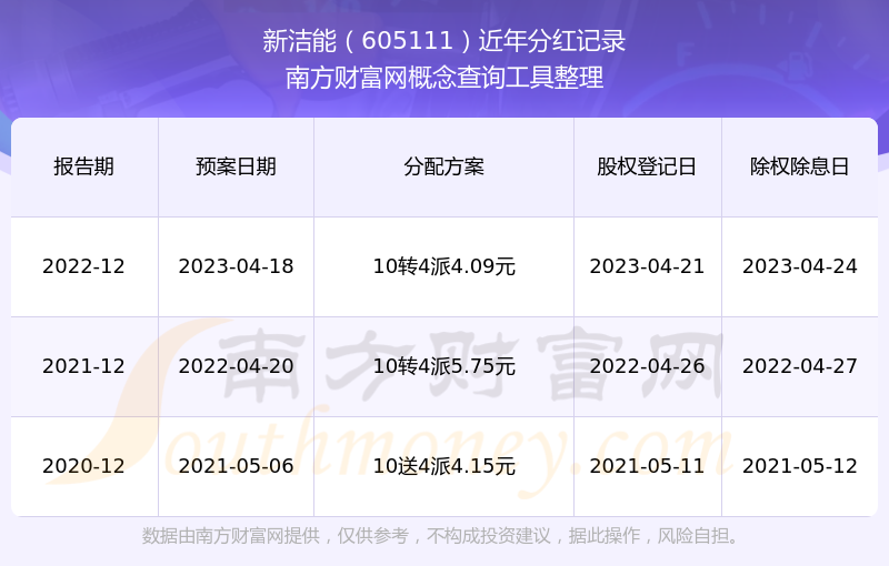 一、新潔能(605111)股票分紅記錄