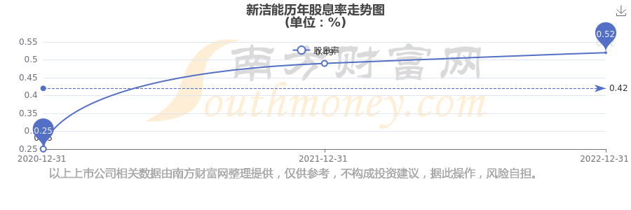 近年新潔能年度股息率走勢(shì)如下圖: