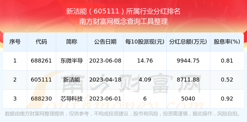二、新潔能605111行業(yè)分紅排名